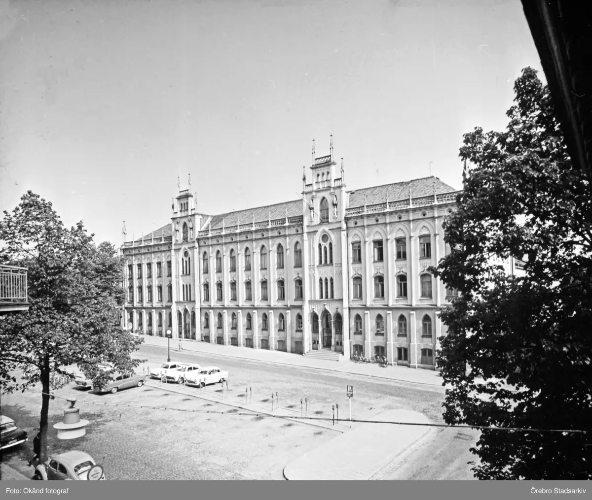 Rådhuset i Örebro med parkering på Stortorget, 1960-tal