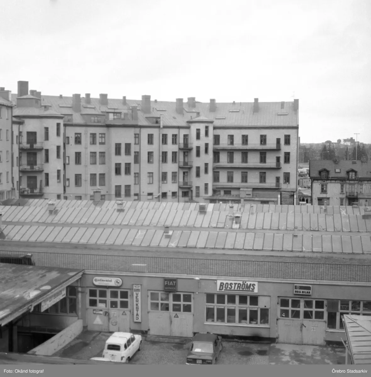Bilverkstad på innergården till Fredgatan 4, 1970-tal