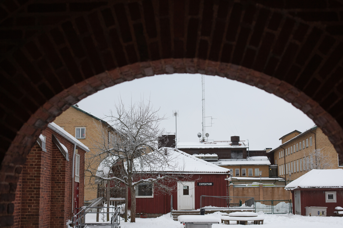 Vänersborg, Norra skolan. Expeditionen i det röda trähuset (tidigare vaktmästarbostad)