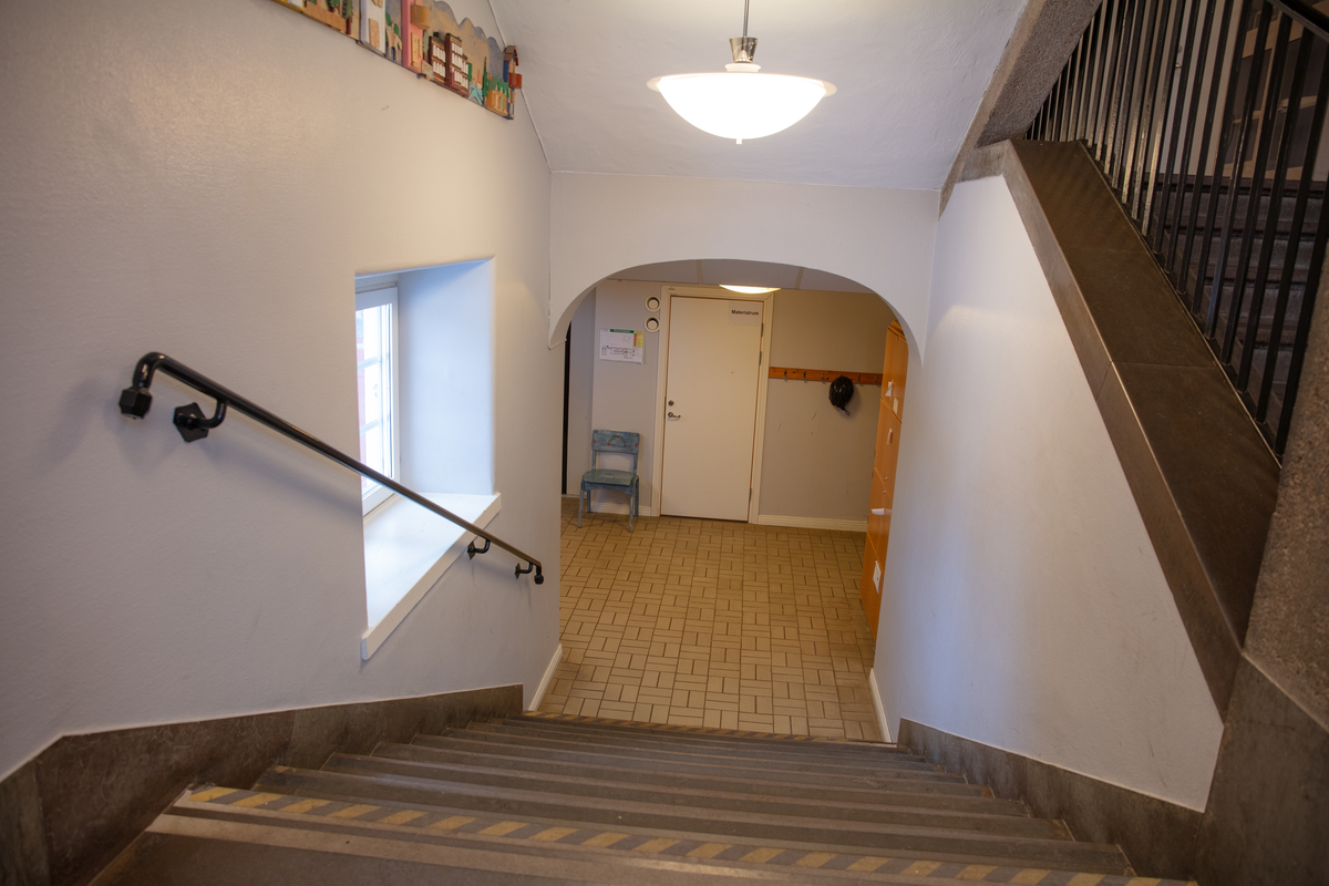 Vänersborg. Norra skolan, trappa ner till trä- och metallslöjd