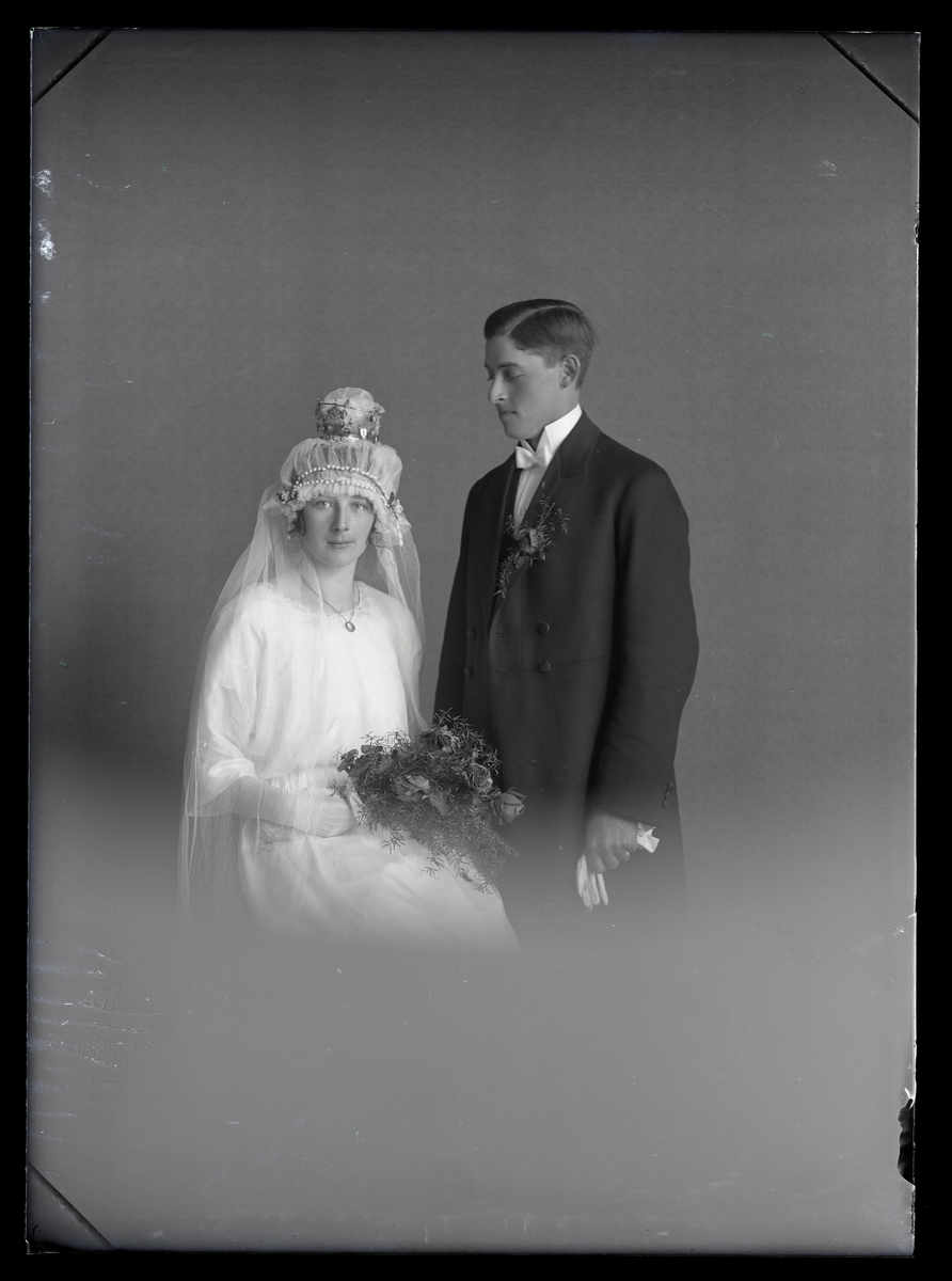 Titel: Brudpar, Larsson Anna, Sörstafors. Ur Gustaf Åhmans samling.