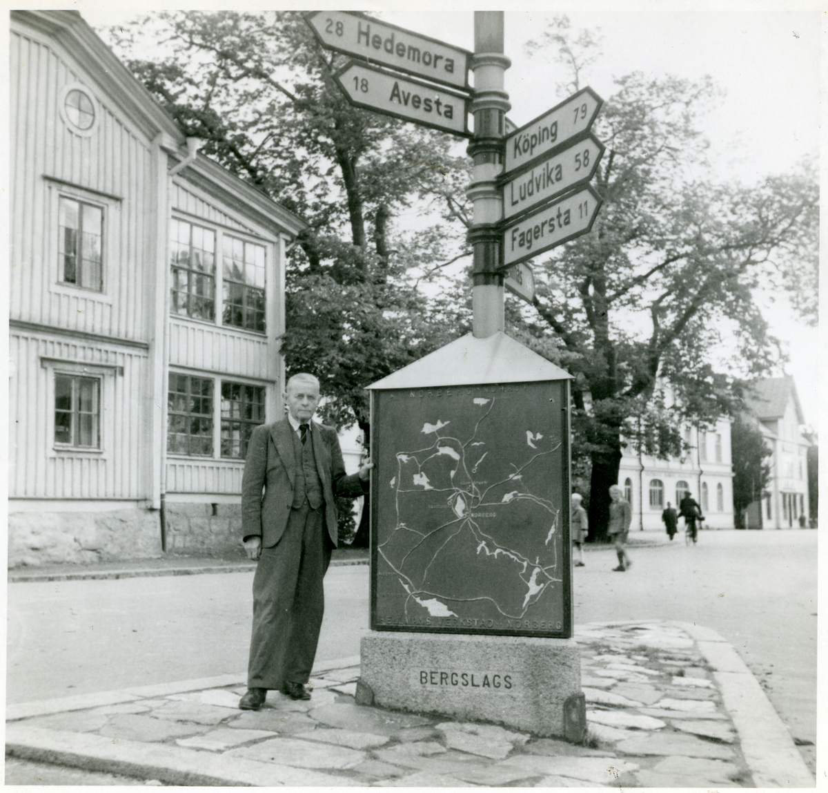 Kamrer August Friberg på refug med vägvisare. 1930-tal.