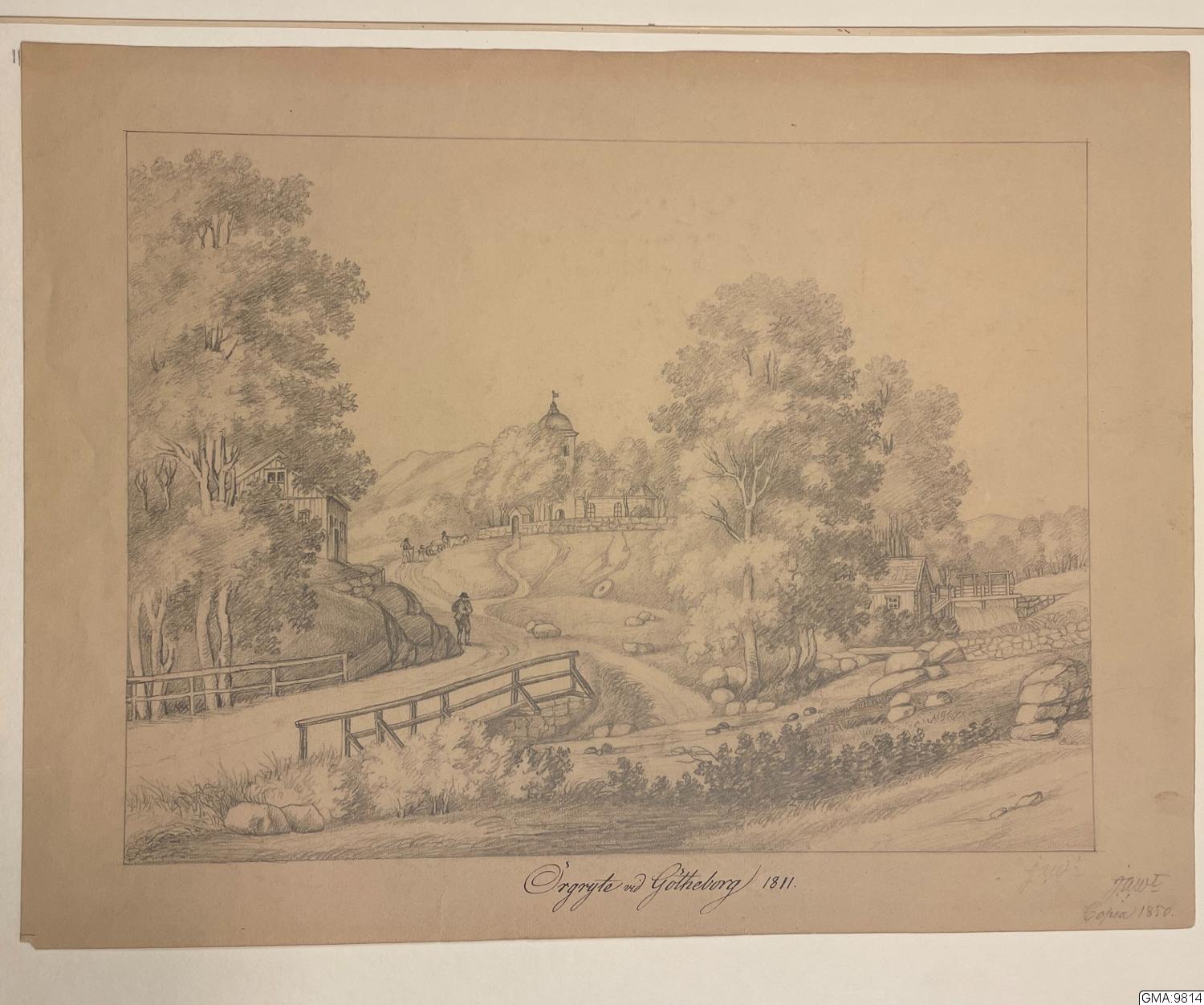 "Örgryte vid Göteborg 1811", kopia 1850 signerad J.A. Wt (=Jacob August Winquist, 1810-1892) efter akvarell av Justus Fredrik Weinberg. Vissa av originalets detaljer återfinns ej på kopian.