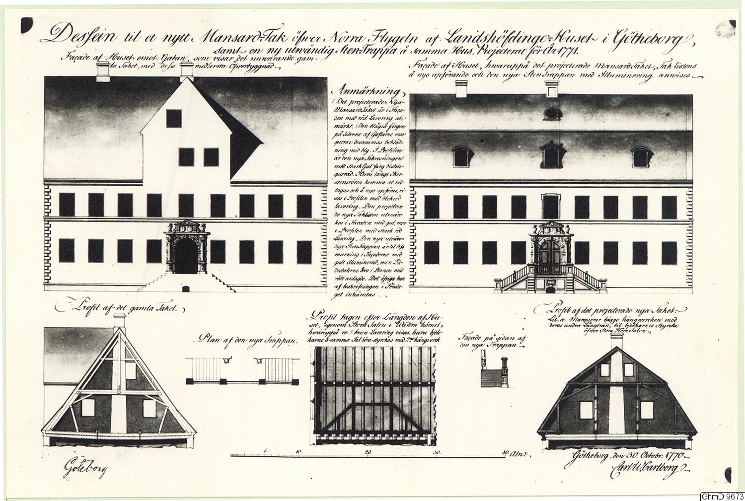 Länsresidenset vid Södra Hamngatan, Ritning till nytt mansardtak till byggnaden