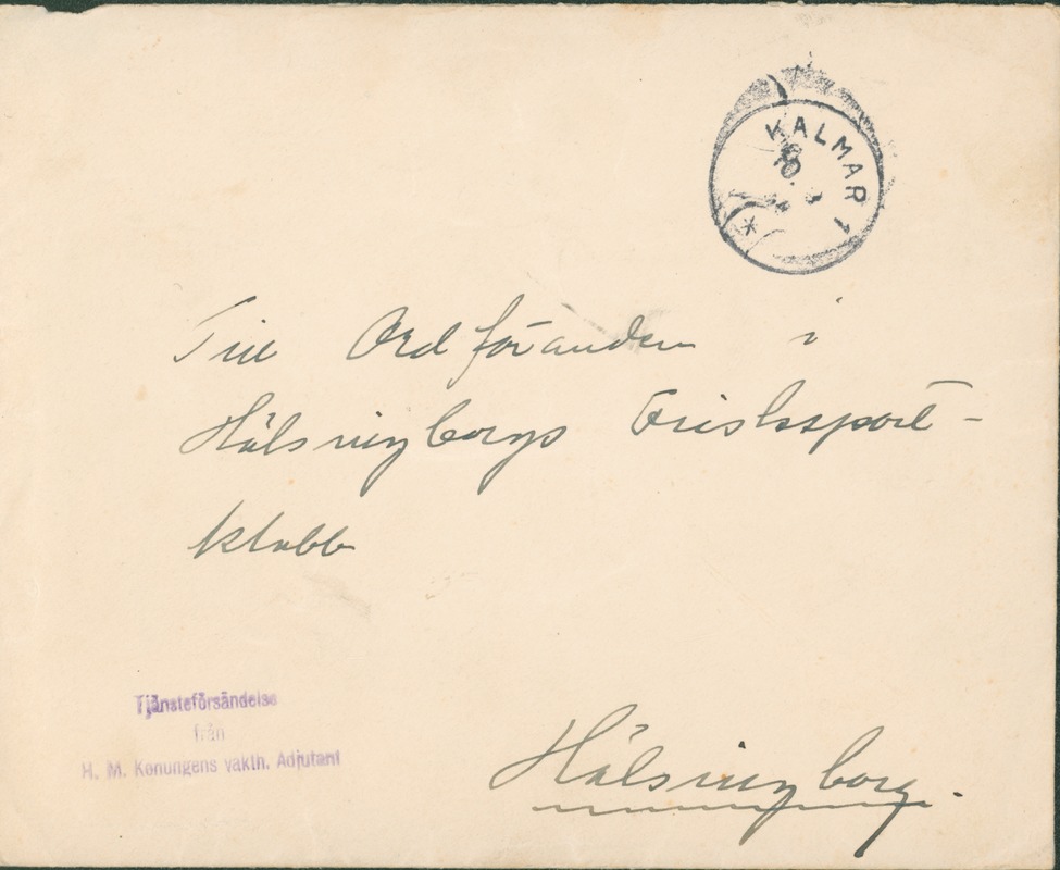 Vill med detta brev överlämna ett litet kort av vår stuga på Söderåsen och samtidigt omtala vad Svensk Ungdom, som går under benämningen frisksportare, förmår. Stugan består av en utdömd järnvägsvagn, som blivit sågad mitt av och hopsatt i vinkel och tillbyggts med en storstuga 5 X 5 m., som innehåller en stor öppen spis. I vardera vinkeln finns kojplatser för 15 personer, den ena för flickorna och den andra för pojkarna. Vagnen, som väger 20 ton, forslade vi åtta kilometer - med hjälp av gamla dragarelaget I Hälsingborg. Vi fick sedan själva ordna att den kom i vinkel och med allt annat arbete. Bifogar ett kort extra, som jag hoppas, Hans Majestät sänder tillbaka med några rader om vad Hans Majestät tycker om vår stuga. Vi får då ett kort med i vårt album. Skulle det kunna tänkas att Hans Majestät har sina vägar åt vår stuga till, är Hans Majestät hjärtligt välkommen. Hoppas att vi då även skall ha inredningen riktigt färdig så som vi tänkt oss. På förhand tackande Hans Majestät, tecknar jag för Hälsingborgs Frisksportsklubb Sven Johansson