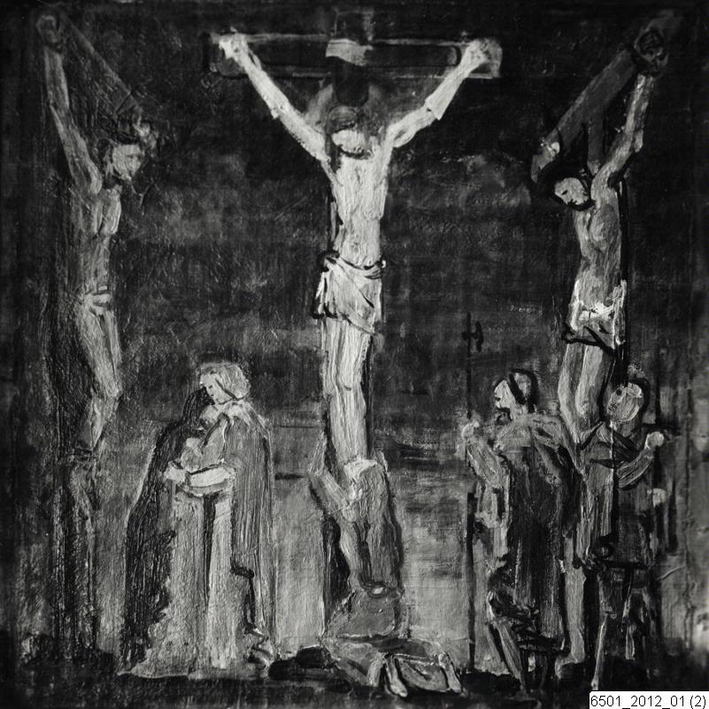 Bilden visar en skiss till altartavla med en biblisk scen, av Hugo Gehlin.