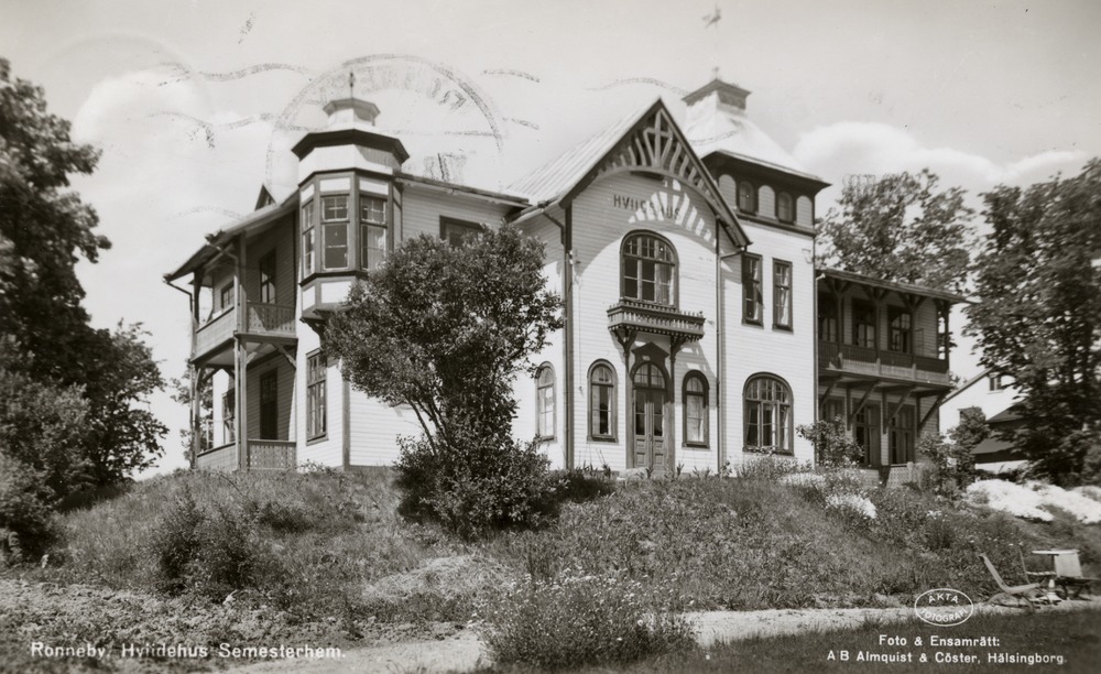 Svartvitt vykort föreställande Hviidehus Semesterhem i Ronneby.