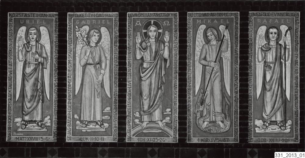 Bilden visar fem altartavlor i Pålsjö begravningskapell, av Hugo Gehlin.