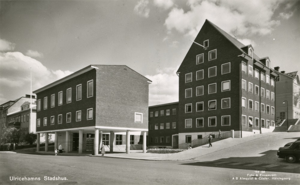Svartvitt vykort föreställande Ulricehamns Stadshus.