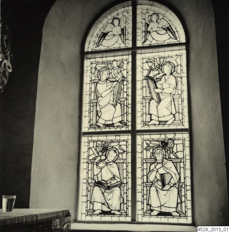 Bilden visar en glasmålning i Stoby kyrka av Hugo Gehlin.