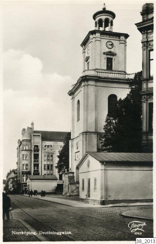 Bilden visar Drottninggatan i Norrköping med S:t Olai kyrkas torn.