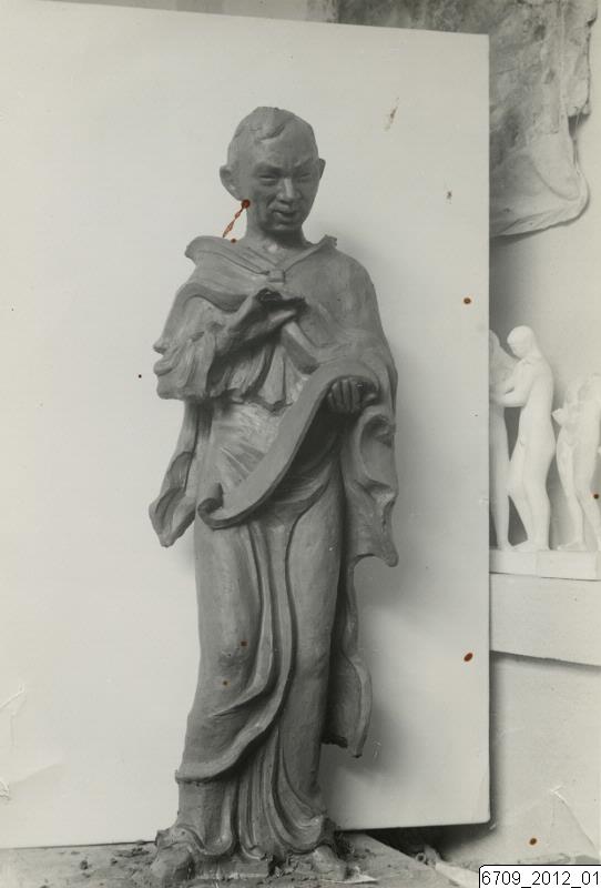 Figuren finns på orgelläktaren i Mariakyrkan i Helsingborg, och är skapad av Hugo Gehlin.