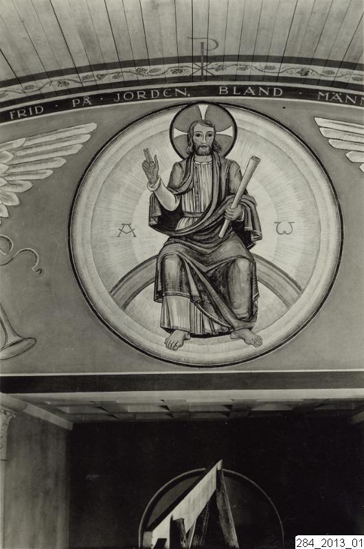 Bilden visar en detalj av en takmålning i Allhelgonakyrkan i Helsingborg, av Hugo Gehlin.
