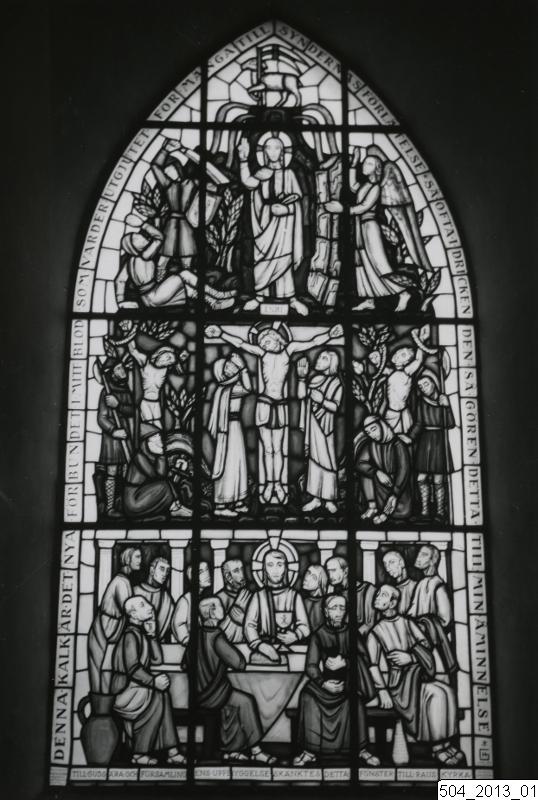 Nederst nattvarden, i mitten korsfästelsen och överst uppståndelsen.