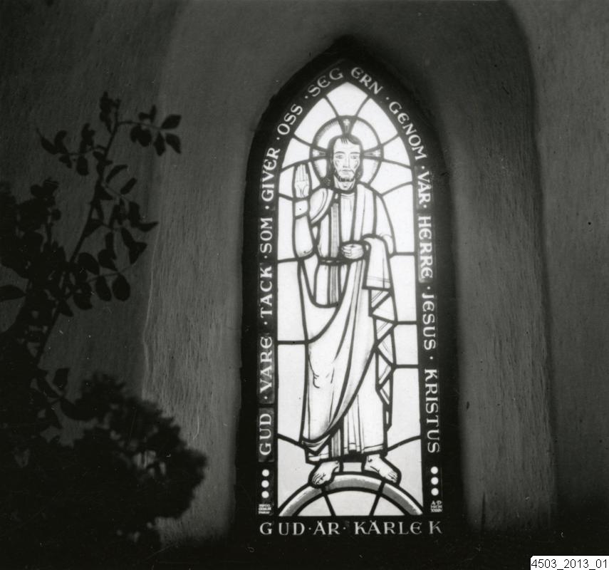 Bilden visar en glasmålning i Stora Råby kyrka av Hugo Gehlin.