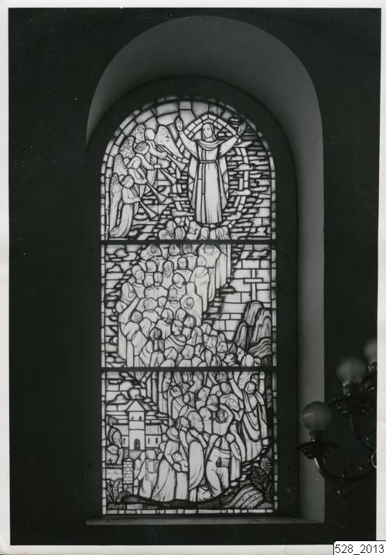 Bilden visar en glasmålning i Munka-Ljungby kyrka av Hugo Gehlin.