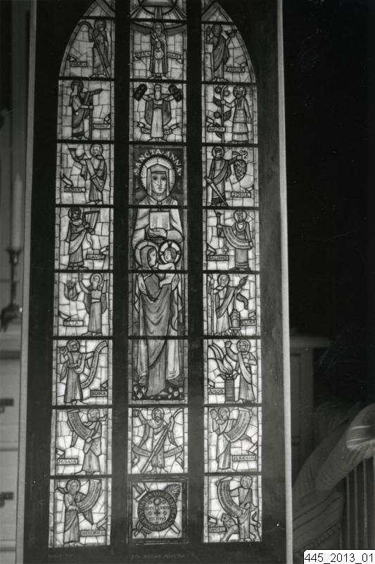 Målningen föreställer S:ta Anna och Maria med Jesusbarnet. De omges av mindre målningar med andra religiösa figurer.