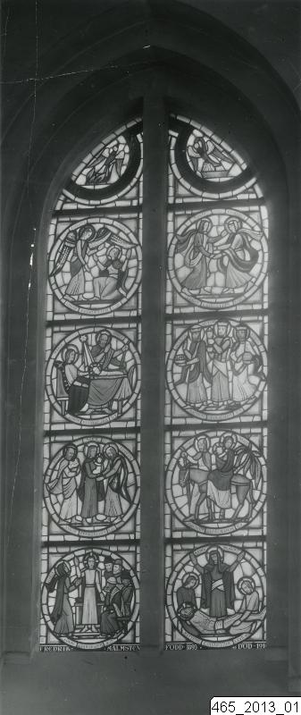 Bilden visar en glasmålning i S:t Petri kyrka i Malmö av Hugo Gehlin.