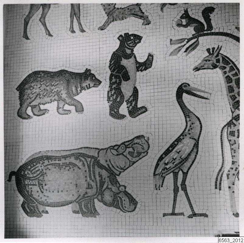 Bilden visar en del av en mosaik på Helsingborgs barnsjukhus, Djur i paradis, skapad av Hugo Gehlin.