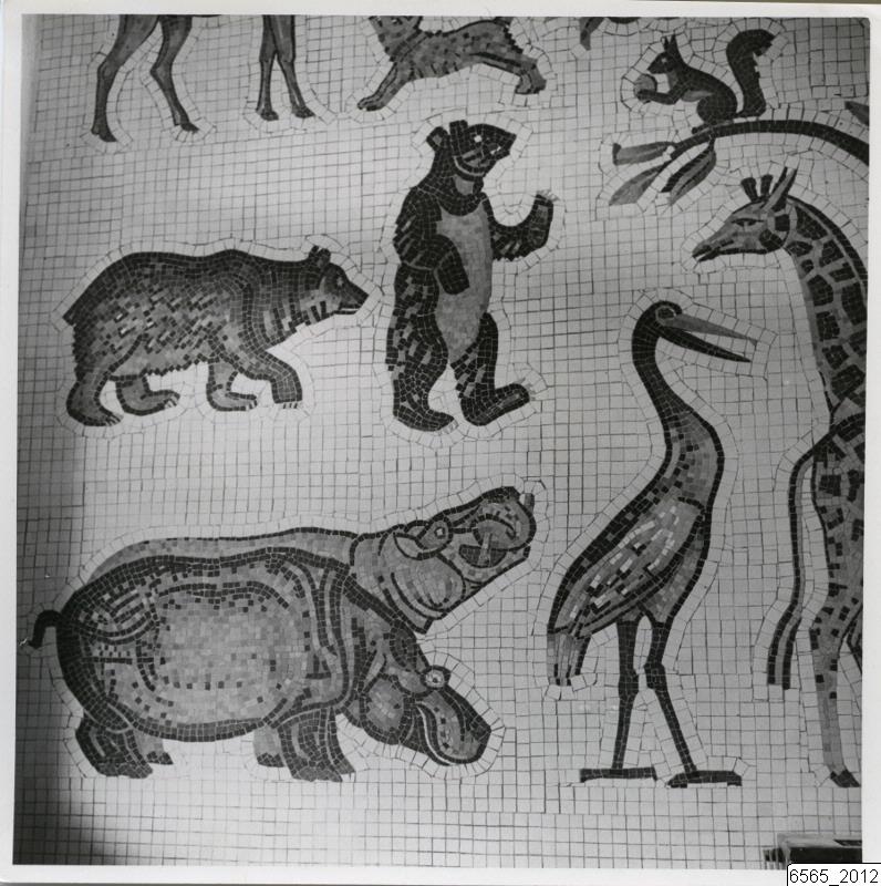 Bilden visar en del av en mosaik på Helsingborgs barnsjukhus, Djur i paradis, skapad av Hugo Gehlin.