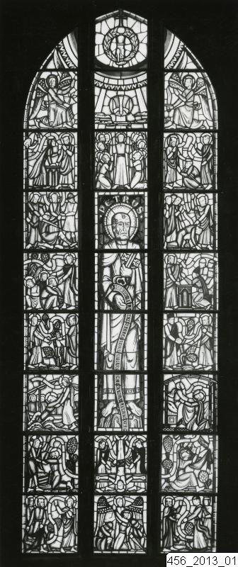 Bilden visar en glasmålning i S:t Petri kyrka i Malmö av Hugo Gehlin.