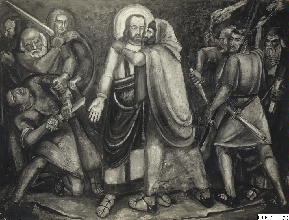 Bilden visar en biblisk scen målad av Hugo Gehlin.