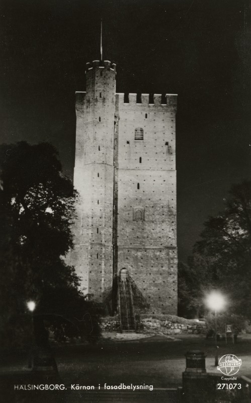 Svartvitt vykort föreställande Kärnan i Helsingborg.