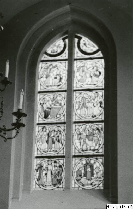 Bilden visar en glasmålning i S:t Petri kyrka i Malmö av Hugo Gehlin.