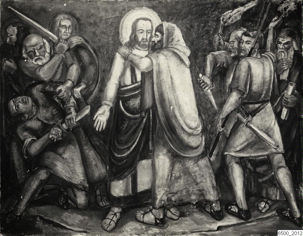 Bilden visar en biblisk scen målad av Hugo Gehlin.