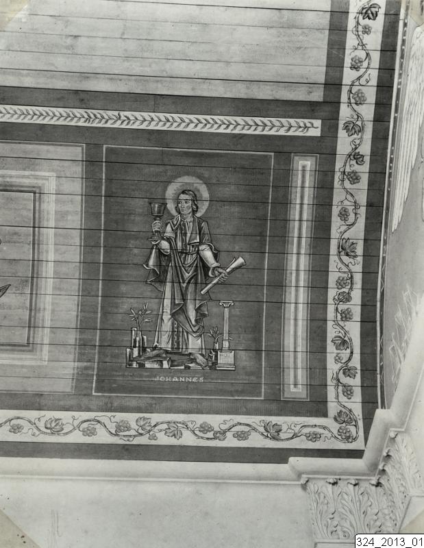 Bilden visar en detalj av en takmålning i Allhelgonakyrkan i Helsingborg, av Hugo Gehlin.