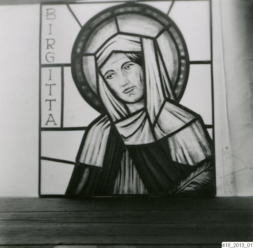 Bilden visar en glasmålning i Allerums kyrka av Hugo Gehlin.