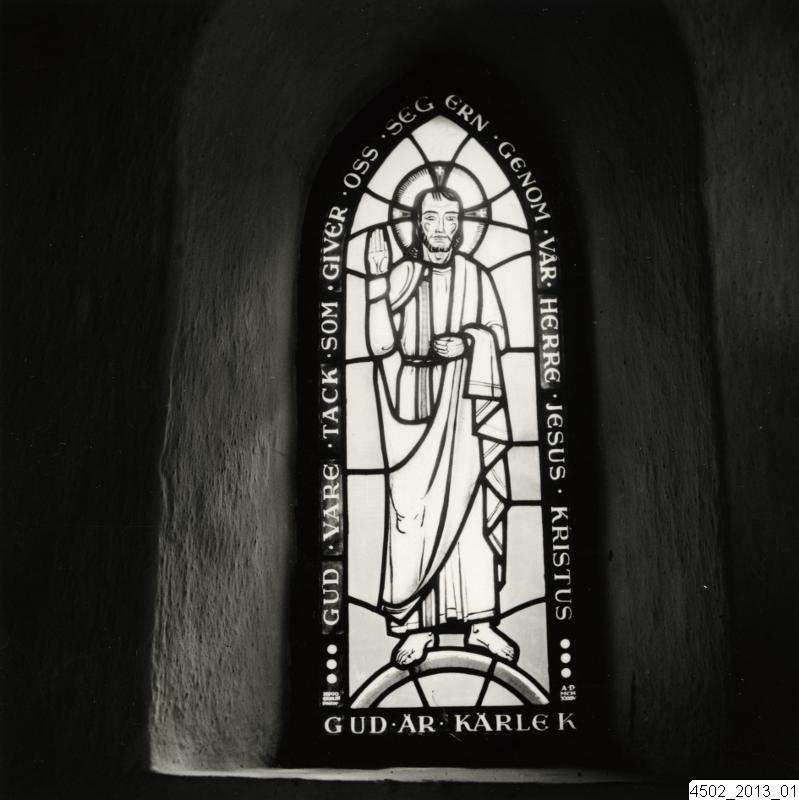 Bilden visar en glasmålning i Stora Råby kyrka av Hugo Gehlin.