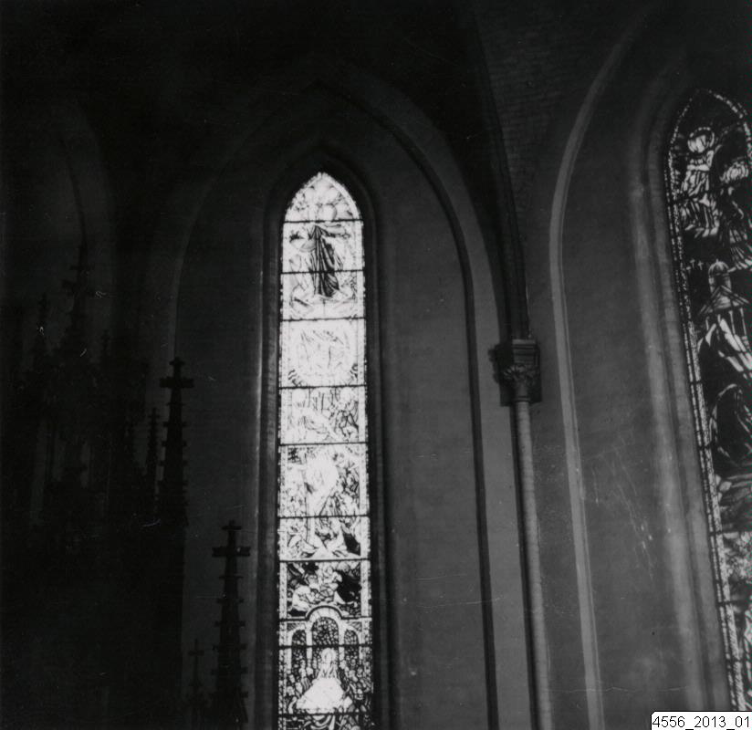 Bilden visar en glasmålning i en kyrka, okänt var den finns.