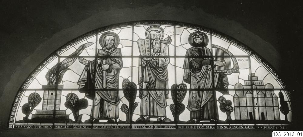 Bilden visar en glasmålning i Allerums kyrka av Hugo Gehlin.