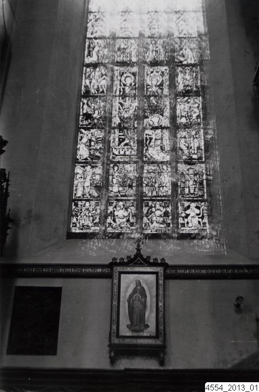 Bilden visar en glasmålning i en kyrka, okänt var den finns.