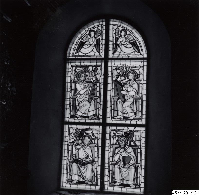 Bilden visar en glasmålning i Stoby kyrka av Hugo Gehlin.