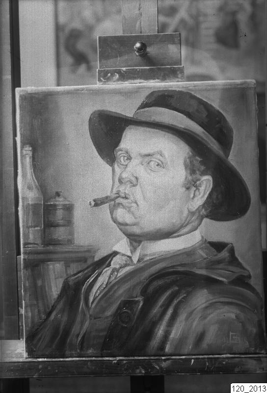 Bilden visar en stafflimålning, Självporträtt 1928, av Hugo Gehlin.
