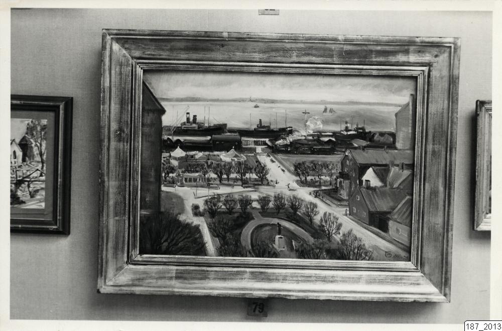 Beskrivning: Bilden visar en stafflimålning, Utsikt över S:t Jörgens plats 1928, av Hugo Gehlin.