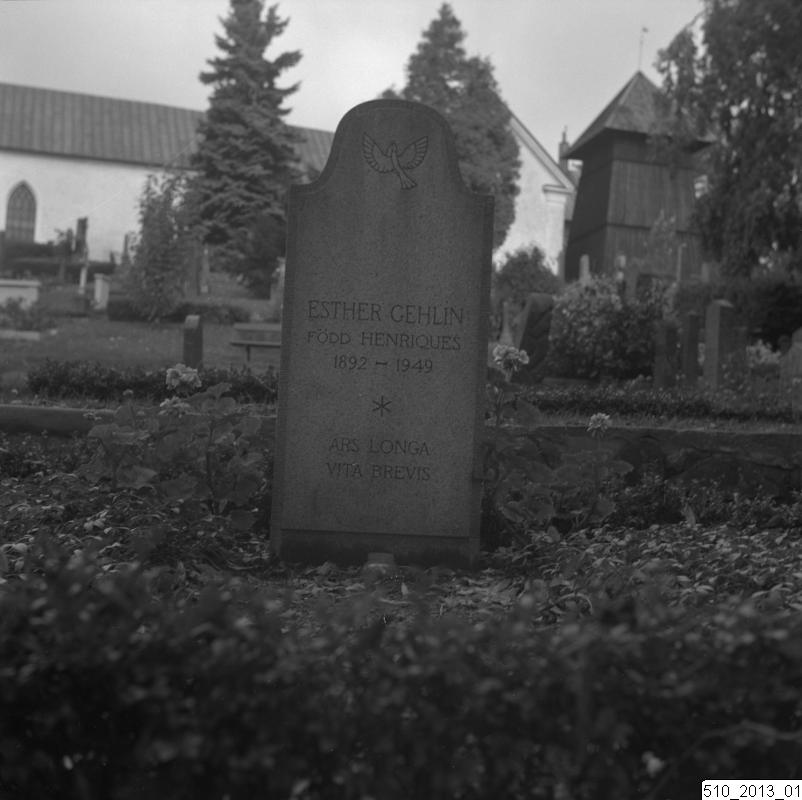 Bilden visar Esther Gehlins gravsten på Raus kyrkogård.