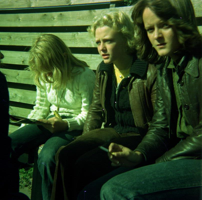 Ungdomar i rökrutan på Fredriksdalsskolans skolgård.