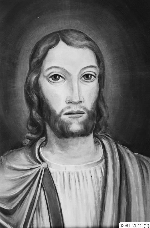 Bilden visar en detalj av altartavlan i Reslövs kyrka, målad av Hugo Gehlin 1933. Motivet är en detalj med Jesu huvud.