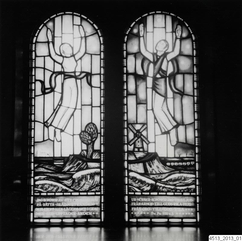 Bilden visar en glasmålning i Krematoriet i Trelleborg av Hugo Gehlin.