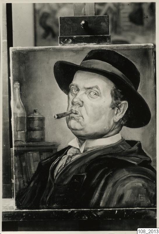 Bilden visar en stafflimålning, Självporträtt 1928, av Hugo Gehlin.