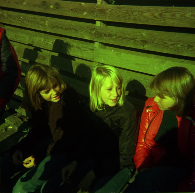 Ungdomar i rökrutan på Fredriksdalsskolans skolgård.