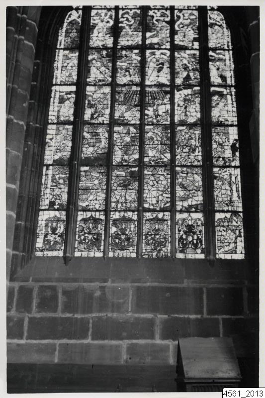 Bilden visar en glasmålning i en kyrka, okänt var den finns.
