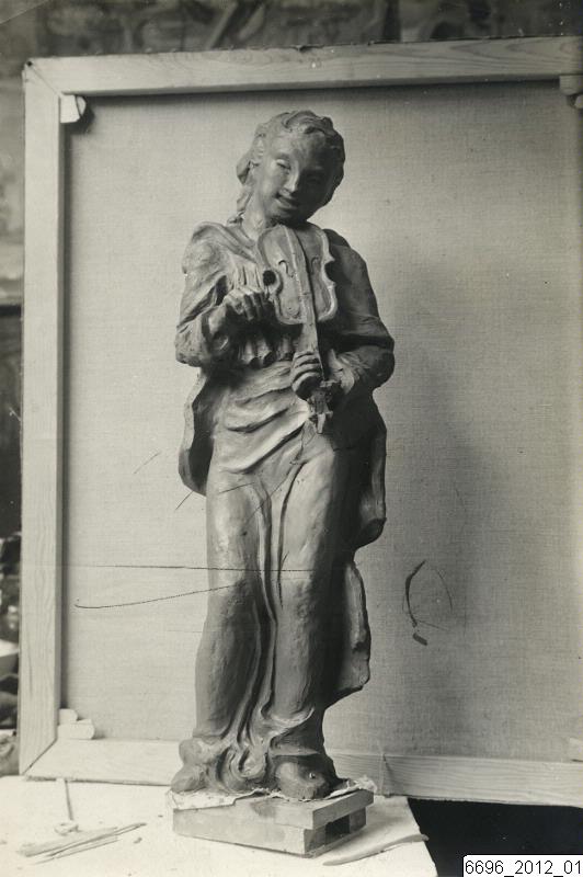 Bilden visar en skiss till förgylld träfigur, och den heter Violin.