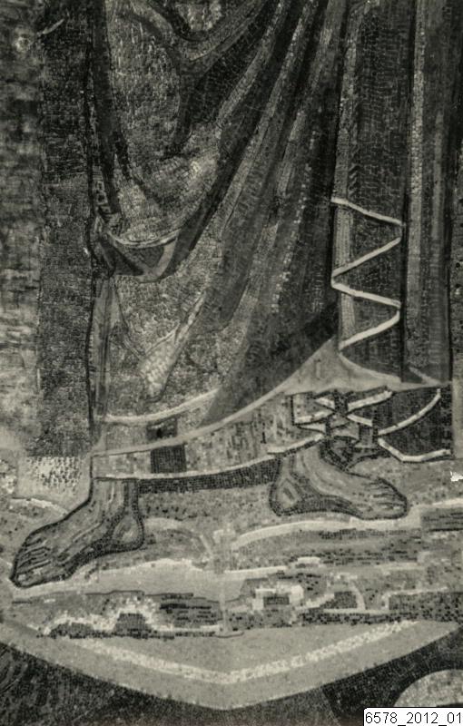 Bilden visar en detalj av Joakim Skovgaards mosaik Uppståndelsen i absiden i högkoret, Lunds domkyrka.