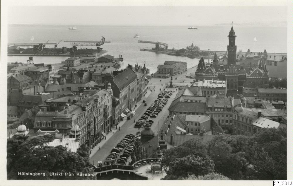Bilden visar en utsikt över Helsingborg och Öresund från Kärnan.