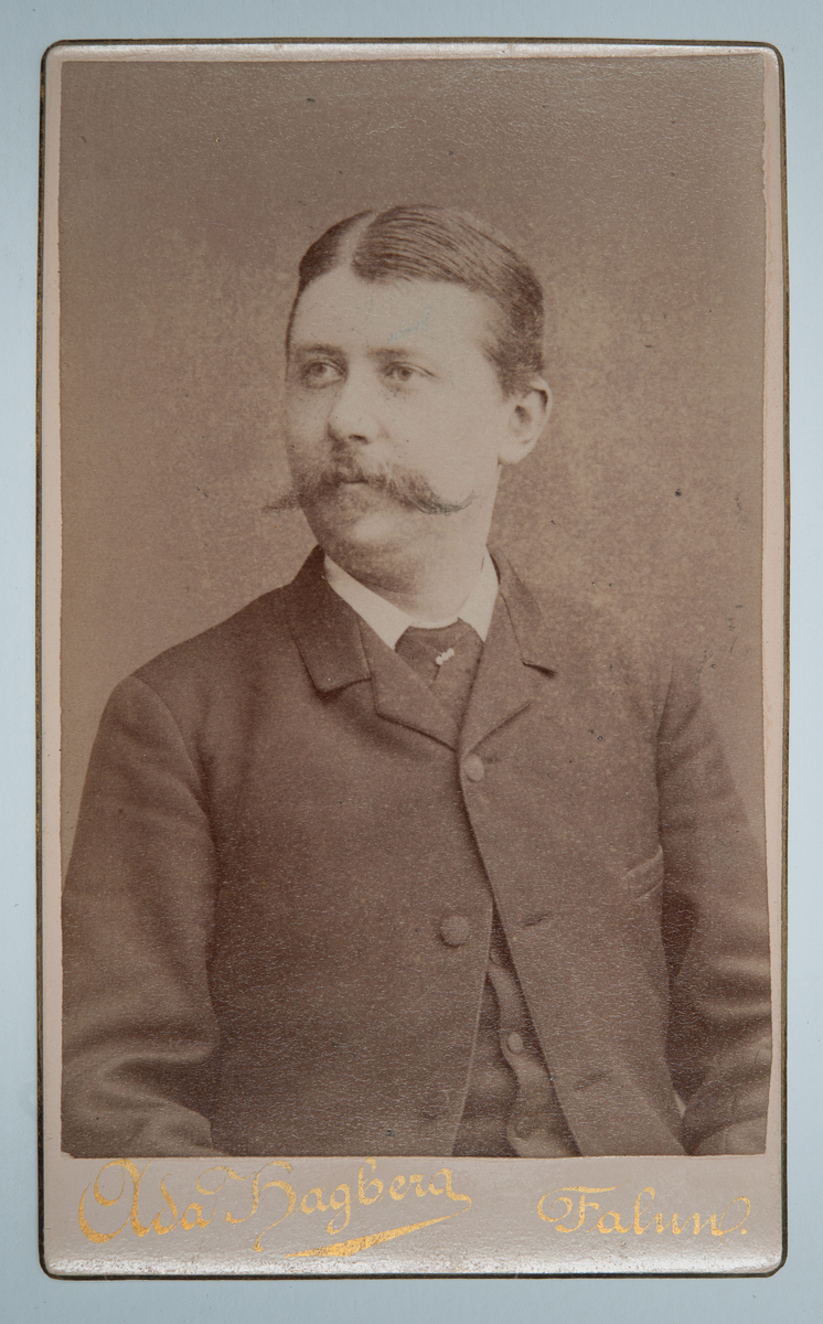 Visitkortsporträtt av okänd man. Fotografiet sitter i fotoalbum som tillhört Gertrud Zachau. Fotografiet sitter på sida 14.