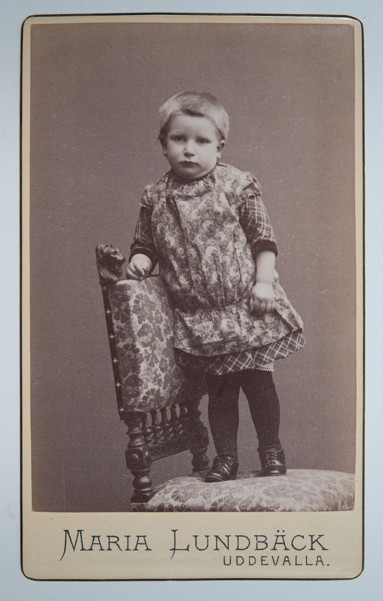 Visitkortsporträtt av okänt barn. Fotografiet sitter i fotoalbum som tillhört Gertrud Zachau. Fotografiet sitter på sida 20.